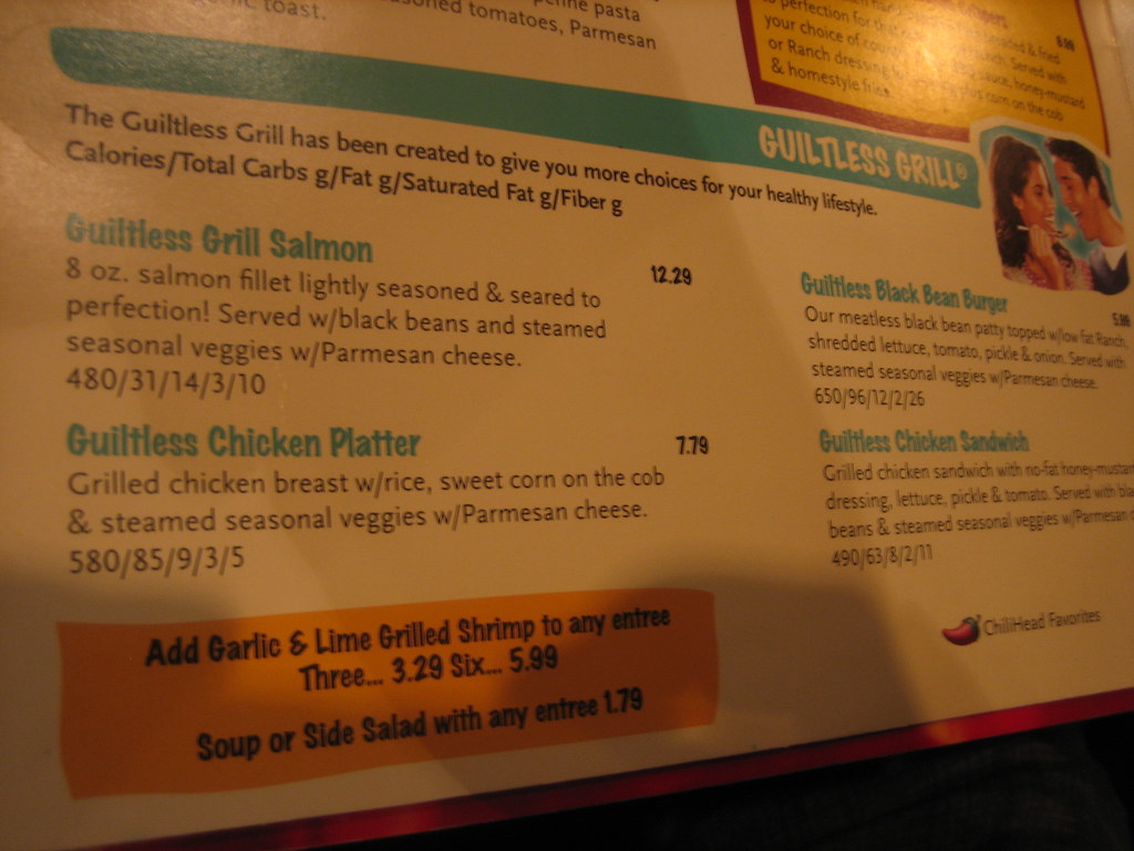 Chili's Guiltless Grill Menu. Add the chicken fillets and marinate for 2 to 4 hours. Our guiltless grill, lighter menu items with the same bold chili’s taste.